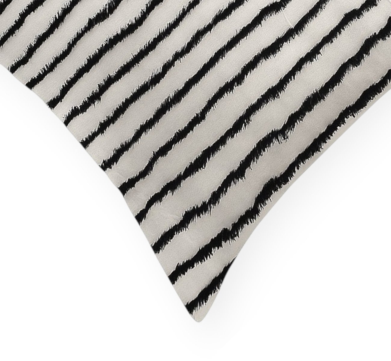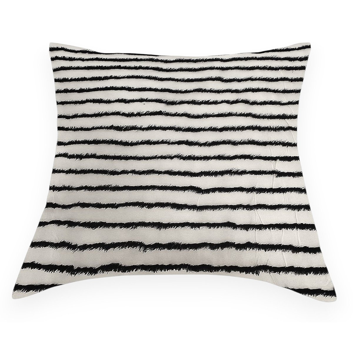 Bring a bold and stylish touch to your décor with this hand-tufted embroidered cushion cover. Designed with textured black horizontal stripes on a white base, it adds a modern yet minimalistic appeal to your living space. The handcrafted detailing enhances its elegance, making it a versatile choice for any room.