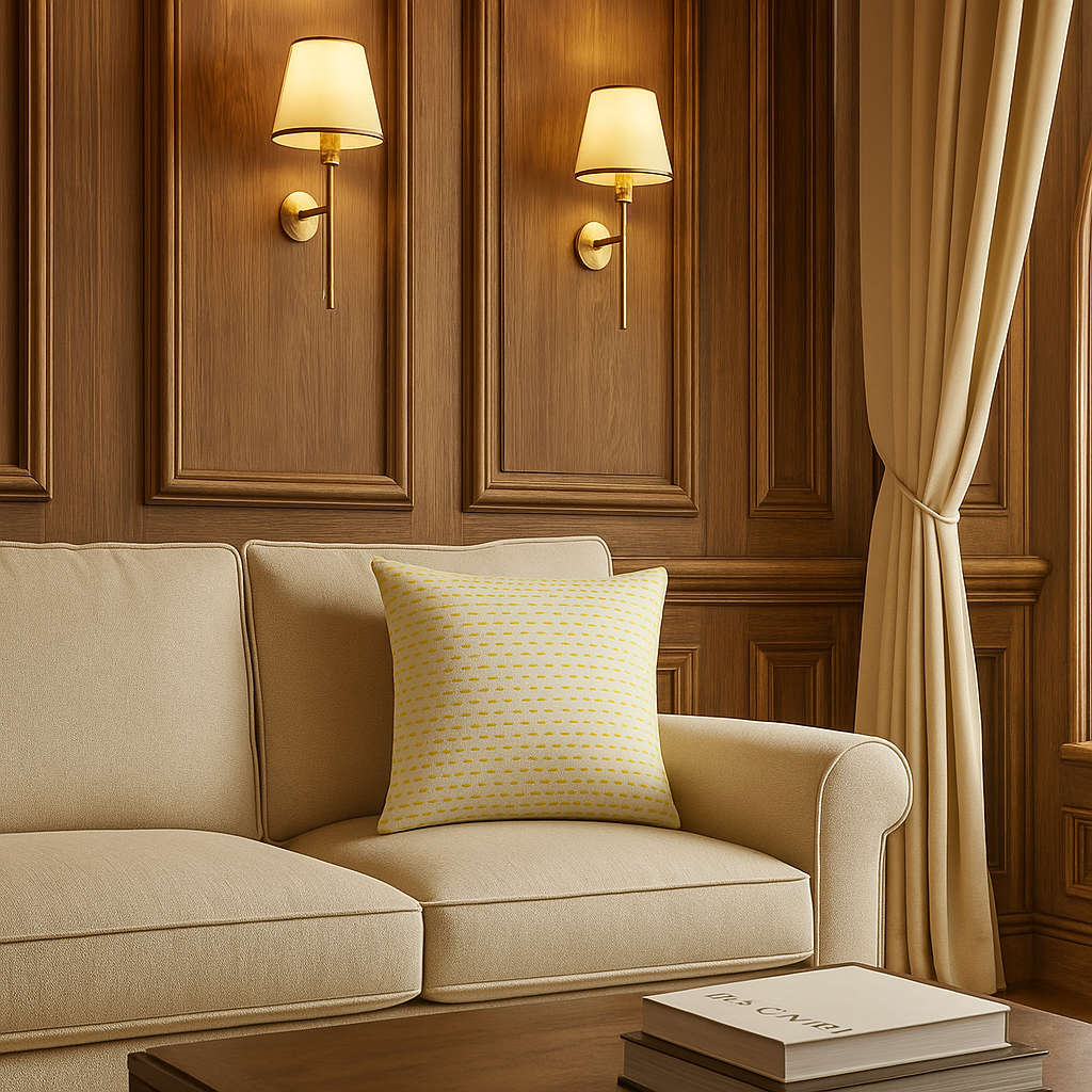 Add a fresh and minimalistic charm to your home with this hand-embroidered cushion cover. Featuring evenly placed green dot embroidery on a neutral fabric base, this design brings subtle texture and style. Its simple yet elegant look makes it a versatile accent piece for any room décor.