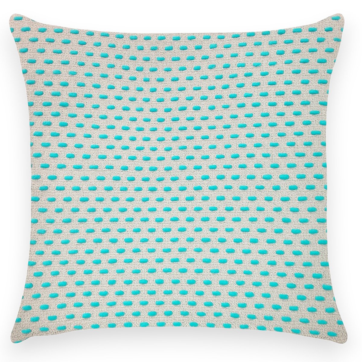 Soft Fabric Aqua Blue Polka Dot Hand Work Cushion Cover